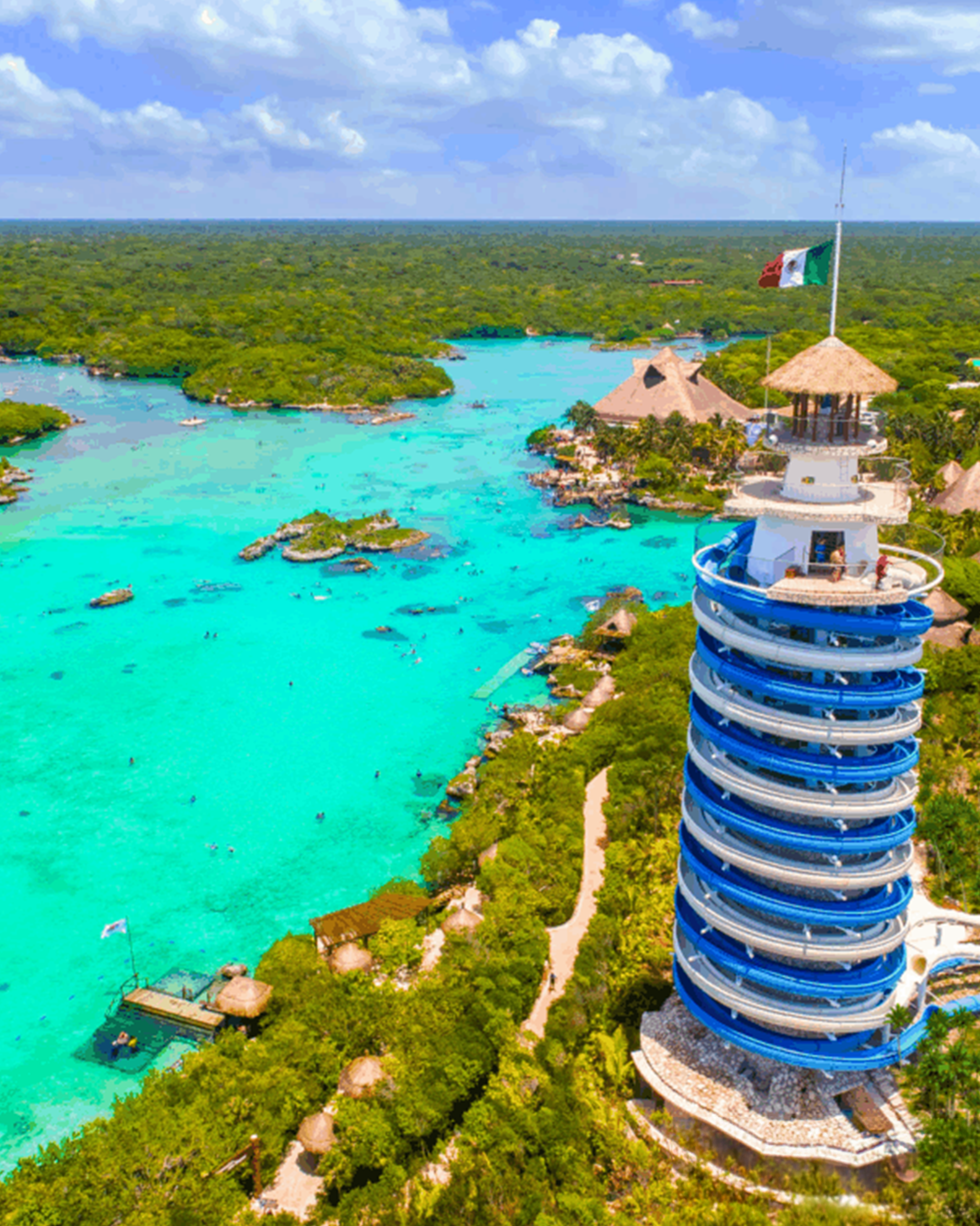 Eco-parque arqueológico con ríos subterráneos y cultura mexicana.